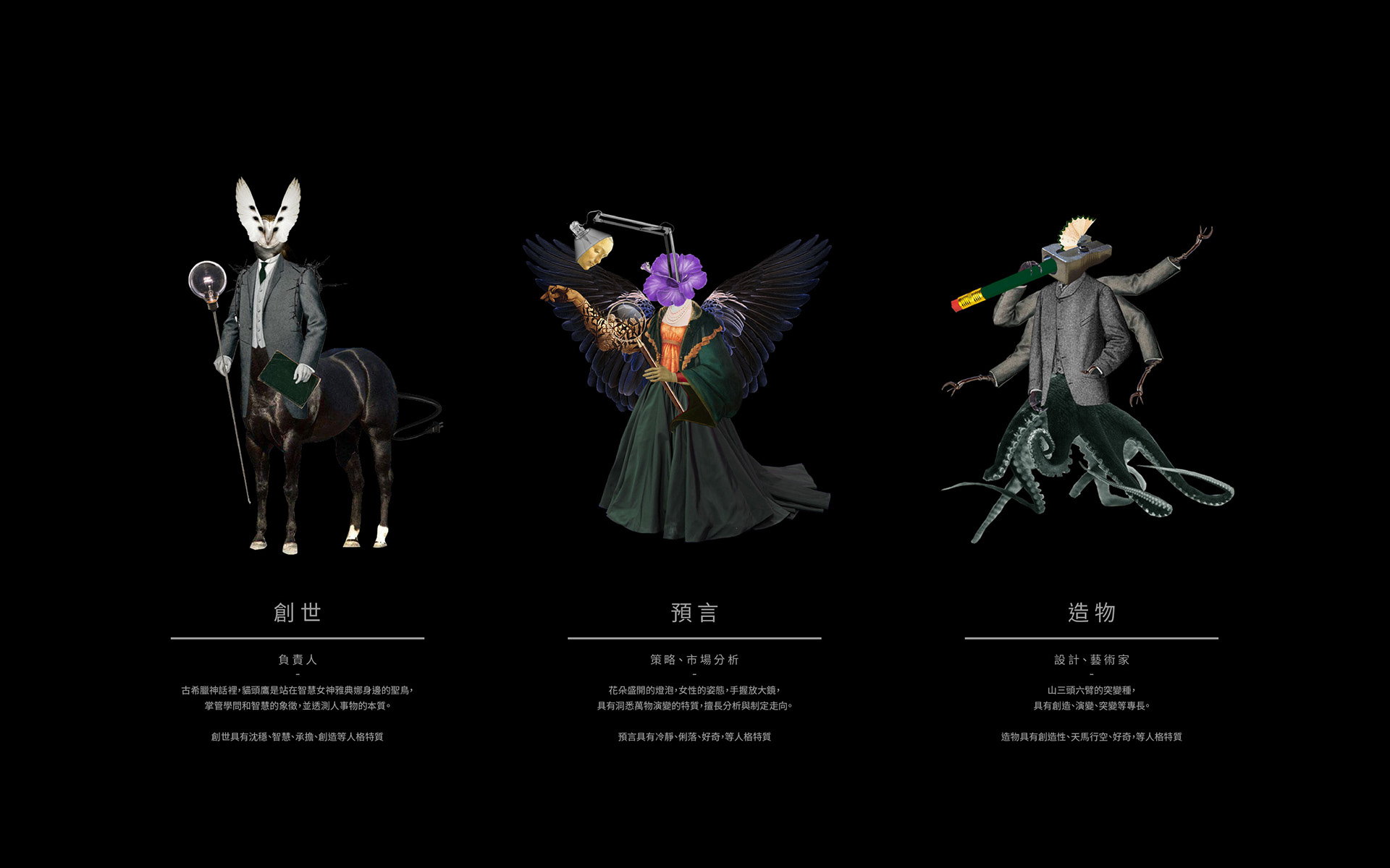 標誌設計的概念是假想現今社會的不同產業下延伸的怪物形式,再根據不同變異演化的部位或動物代表著不同符號。不同只怪物在品牌上也代表著不同意思。